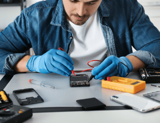 Servisiranje mobilnih telefonov / GSM-naprav: menjava ali popravilo LCD zaslonov, dotikalnih enot, konektorjev (baterijski, polnilni), zvočnikov, mikrofonov, ploskih kablov, gumbov, servis matičnih plošč telefonov.