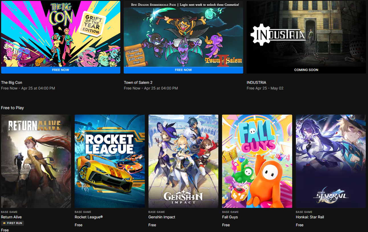 GOG, Indiegala in Epic Games imajo posebne odseke za brezplačne igre. Te igre običajno vključujejo modele, kot smo jih videli prej (plačaj za zmago, plačaj za hitrost, …), vendar mnoge trenutne videoigre visoke kakovosti delujejo po tem modelu. Hkrati je to način prenosa znanih videoiger iz zaupanja vrednega spletnega mesta.
